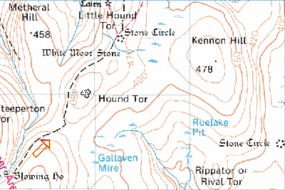 Hound Tor (“where I used to walk with my dog”). From a map of the area you can see that RUELAKE PIT [STO3]
