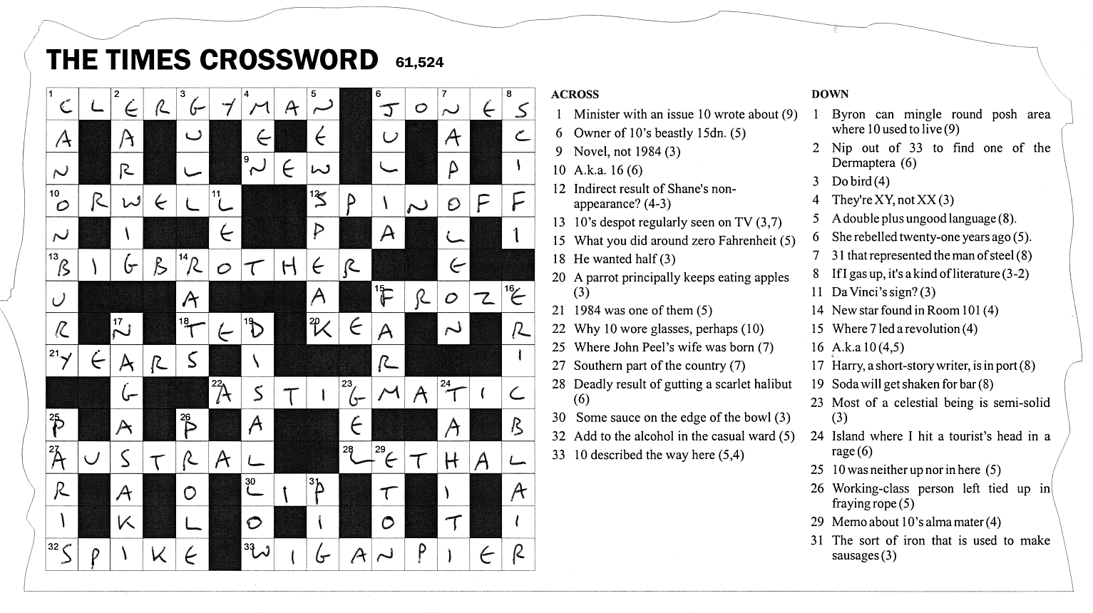 The crossword itself has a George Orwell theme, as did the 1995 Hunt. The solution is as follows:
